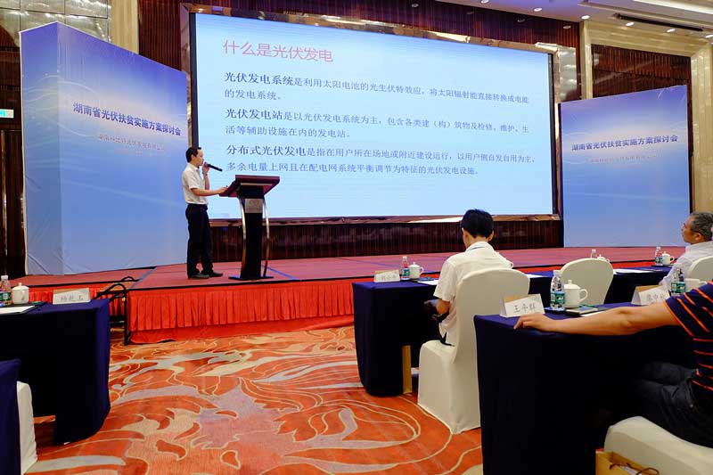為了光伏扶貧工作切實(shí)推進(jìn),為讓更多的人了解光伏發(fā)電,讓更多的參與到光伏發(fā)電項(xiàng)目,使分布式光伏發(fā)電項(xiàng)目健康發(fā)展,我省急需探討出科學(xué)、高效的光伏發(fā)電扶貧模式。本次會(huì)議以“探討湖南光伏發(fā)電新模式,推動(dòng)湖南省光伏發(fā)電發(fā)展”為主題展開(kāi),主要目的是解讀國(guó)家光伏政策及光伏發(fā)展現(xiàn)狀、趨勢(shì);了解湖南省光伏電站實(shí)施現(xiàn)狀;光伏電站建設(shè)現(xiàn)狀、所面臨的問(wèn)題及應(yīng)對(duì)辦法;探討移動(dòng)互聯(lián)網(wǎng)下的“合伙人計(jì)劃”。